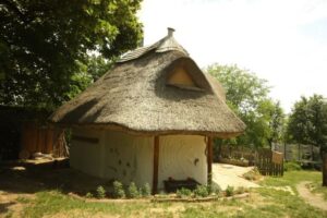 Střecha je ve tvaru srdce – přírodní – rákosová (v léte se nepřehřívá) a funguje navíc jako tvarový zářič (podobně jako pyramida, nebo kužel).