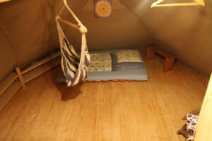 Hudební nástroje jako Tibetské mísy, Didgeridoo, bubínky pro sebeléčení alikvotními tóny a zvukem… Také je zde mimo jiné na cvičení hrazda. Pastelky + ořezávátko, plastelína, papíry, přezůvky.
